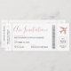 Boarding Pass Plane Ticket Pink Wedding Invitation