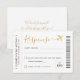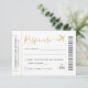 Boarding Pass Ticket RSVP Card with a gold aeroplane logo in faux gold and black modern and script fonts, perfect for an "around the world" theme birthday party, sweet 16, wedding or bat mitzvah.