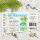 Fun, tropical theme "boarding pass" retirement party invitation. Personalise all the details for your upcoming celebration.