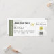 Get guests excited for your wedding adventure with this tropical Boarding Pass Save the Date! Styled like a real airline ticket, this creative design features travel-inspired details like flight info, QR code, and an aeroplane graphic—perfect for destination weddings. With modern fonts, subtle palm leaf accents, and a Bali, Indonesia theme, it’s ideal for beach weddings, tropical getaways, or jet-set celebrations. Fully customisable with your names, wedding date, and location.