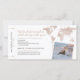 Boarding Pass Save the Date Card with an elegant neutral tan brown watercolor world map, modern boho fonts, and 2 photos with abstract geometric borders around them. You can use this template to create your own unique travel theme destination wedding date announcement, leave the design as-is, or have some fun with DIY design using our layout.