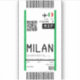 Sticker design based on a boarding pass to Milan Malpensa Airport.