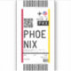 Sticker design based on a boarding pass to Phoenix, Arizona.
