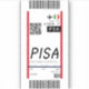 Sticker design based on a boarding pass to Pisa International Airport, Tuscany, Italy.