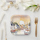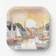 Boat Bay | Coastal Ocean Watercolor Painting Paper Plate