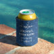 If you sail your own boat or yacht, let everyone know with this stylish nautical can cooler. Made in navy blue with stars and white text, the design says, "Captain [Your Name]," followed by the name of your boat. The "t" in the word "Captain" is an anchor.