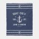 Boat crew for Life! Modern anchor fleece blanket in classic nautical blue and white showcasing your names and date surrounded by rope details. Great gift for boat lovers for Valentine's day, newlyweds, weddings, vow renewals, or anniversaries.