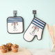 Boat Name,Anchor Flowers Navy Blue Stripes Oven Mitt & Pot Holder Set