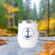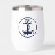 This thermal wine tumbler design features a striking navy blue design of an anchor and rope surrounded by a circular frame with your boat's name, registration number and family name or other text. Makes the perfect gift for a boat launching, new cottage or lake house. Search ID619 to see other products with this design.
