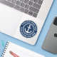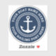 Sticker featuring an anchor inside a rope border with customisable boat name and hailing port wrapped around the circular border. Customisable colour and font.