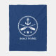 Boat Name Nautical Anchor & Crossed Oars Navy Fleece Blanket