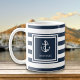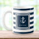 Boat Name Navy Blue Stripe Nautical Anchor Coffee Mug
