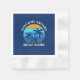 Welcome Aboard Boat Name Summer Palm Trees Sunset Retro Style Navy Blue Cocktail Paper Napkins