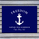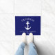 A stylish modern nautical-themed doormat for your boat that features a white illustration of an anchor on a navy blue background. You can personalise with your boat's name, the captain's or family's name or something similar, and a location.
