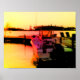 Highly stylized from a digital print, this power boat is moored for the night and lit by the sunset.