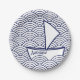 A paper plate with a boat on a Japanese wave pattern. Customise the paper plate with your name or your own text.