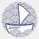 A classic round sticker with a boat on a Japanese wave pattern. Customise the sticker with your name or your own text.