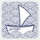 A square sticker with a boat on a Japanese wave pattern. Customise the sticker with your name or your own text.