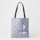 A tote bag with a boat on a Japanese wave pattern. Customise it with your name or your own text.