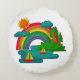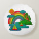 Boat travel landscape under sun clouds and rainbow round cushion