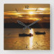 Boats and Fiery Sky Square Wall Clock