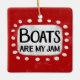 "Boats Are My Jam" is a fun text design with a white accent shape surrounded by white whimsical textured dots.