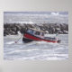 Little fishing boat at anchor. Caught in rough weather.