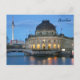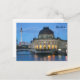 An evening photo of the Bode Museum and Fernsehturm in Berlin, Germany is featured on this postcard.