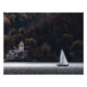 A sailboat and the church of Bodman at Lake Überlingen, a part of Lake Constance (Bodensee) in Germany.