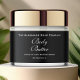 A cosmetics jar label featuring a black background with white text. This label measures 8.25 inches by 1.75 inches (209 mm by 44 mm) and is suitable for jars with a diameter of 2.6 inches (66 mm) or more and a label height area of at least 2 inches (50mm). Most 8 oz (240 ml) and 16 oz (480 ml) jars fit this description, but check the jar specifications to be sure. This label makes a great choice for packaging beauty products that require larger labels like sugar scrubs, body butters, and thick lotions and creams.
