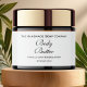A cosmetics jar label featuring a white background with black text. This label measures 8.25 inches by 1.75 inches (209 mm by 44 mm) and is suitable for jars with a diameter of 2.6 inches (66 mm) or more and a label height area of at least 2 inches (50mm). Most 8 oz (240 ml) and 16 oz (480 ml) jars fit this description, but check the jar specifications to be sure. This label makes a great choice for packaging beauty products that require larger labels like sugar scrubs, body butters, and thick lotions and creams.