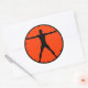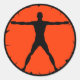 © Sunny Mars Designs - Body Madness Black Vitruvian Muscle Man Silhouette Health and Fitness Round Stickers - Cool custom round stickers with an illustration of a black silhouette of a male in the Vitruvian position against a burnt orange, jagged-edged circular background. Perfect promotional material for bodybuilders or bodybuilding concepts, personal trainers, fitness instructors and coaches, for those athletic muscular fit men into fitness and working out or those into health and anatomy.
