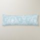 A body pillow featuring French country-inspired Willa Toile in aqua, with a coordinating Swedish cottage Stockholm gingham backside in aqua and white.