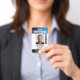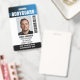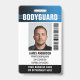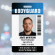Professional bodyguard badge with a profile photo and company logo. This editable template can be personalised with a photo, name, job title, ID number, business name, expiration date, barcode, and company logo for branding. A modern design with gradient stripes and a clean font. It offers fully customisable text to fit your business brand. Ideal for various workplaces and roles, such as personal bodyguard, security guard, close protection officer, private corporate security, store security, official doorman, event team, retail employee, medical staff, small business pass, conference name tags and more! Printed colours: black, white and blue. Shop the collection for more popular security product ideas and supplies for sale online.
