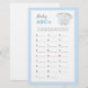 The Baby ABCs game is a fun activity for any Baby Shower, as guests try to fill in the cards with baby items that start with each letter of the alphabet. This card comes in a blue color scheme, featuring a cute bodysuit illustration. The perfect addition to any Baby Shower party!