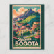 Bogota retro vector travel design. From the vibrant streets of La Candelaria and breathtaking views atop Monserrate to world-class museums and colourful street art, Bogotá offers an unforgettable urban and cultural adventure.