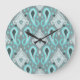 Bohemian Aqua Turquoise Ikat Tribal Art Pattern Large Clock