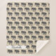 Pretty grey and beige sherpa blanket with grey elephant silhouettes and a ribbon graphic featuring your custom name in grey script.