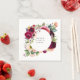 Elegant watercolor bohemian frame of flowers, feathers and foliage in chic shades of purple, burgundy, pink, peach and green, personalised paper napkins.  Text font style, and colour can be customised.  Designed to match our Bohemian Blooms Collection.