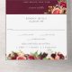 Beautiful watercolor bohemian floral arrangements with feathers, foliage, and colourful flowers, all in one wedding invitation in burgundy colour. Template provides space to personalise each invitation with your guest name(s) and address.