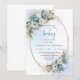 Bohemian Blue Floral Eucalyptus Gold Baby Shower Invitation
