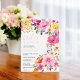 Bohemian bold floral watercolor bridal shower invitation featuring hand painted bright blooms pink, orange, yellow flowers and greenery eucalyptus leaves and indigo foliage with a modern script brush font with real rose gold foil. Perfect bridal invite for Spring and summer, for garden party theme and outdoors.
