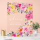 Bohemian bold floral watercolor bridal shower welcome foam board featuring hand painted bright blooms pink, orange, yellow flowers and greenery eucalyptus leaves and indigo foliage with a modern script brush font on transparent acrylic. Perfect bridal invite for Spring and summer, for garden party theme and outdoors.