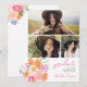 Celebrate your graduation with our Bohemian Bold Wildflowers Photos Graduation announcement card! This stunning design features hand-painted vibrant orange, pink, and lavender wildflowers intertwined with lush greenery, adding a touch of natural beauty to your special day. Customise the invitation with three of your favourite photos, showcasing your journey and memories. With modern brush script font, this invitation effortlessly combines contemporary style with bohemian charm. Get ready to share your achievement with loved ones in a way that feels uniquely you!
