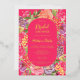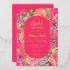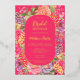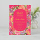 Bohemian bright floral arch script bridal shower invitation featuring pretty hand painted bright and bold modern flowers mix a vintage feel, with coral peonies, purple flowers, pink roses and greenery with a botanical boho themed bridal party. With a modern script typography and neon pink with real gold foil.