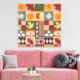 A unique and artistic patchwork pattern inspired by mystical symbolism and nature’s timeless beauty. This eye-catching design features suns, moons, stars, snakes, eyes, apples, birds, and geometric shapes in a rich mid-century inspired palette. Perfect for those who love bold bohemian interiors, spiritual décor, or retro statement pieces. Great for fabric, wallpaper, quilting, creative projects, and eclectic home styling.