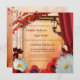 A romantic wedding invitation featuring colourful flowers on a classic Mediterranean style background with a lantern and fall leaves. This invitation has matching RSVP cards. Beautiful for a fall wedding.