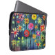 A vibrant, abstract artwork featuring whimsical, multi-coloured flowers with circular centres against a blue and yellow backdrop, embodying a joyful folk art style.