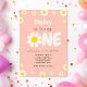 Bohemian Cute Pink Daisy Flowers 1st Birthday Invitation