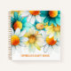 Bohemian Daisies Wildflower Pattern Name Baby Book.  To jot down all those important milestones and moments of yor baby's first year. Bold and colourful large watercolor florals in shades of turquoise, yellow and white. Easy to personaslie the text.